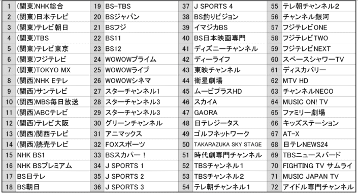 *チャンネルは増減することがあります。
